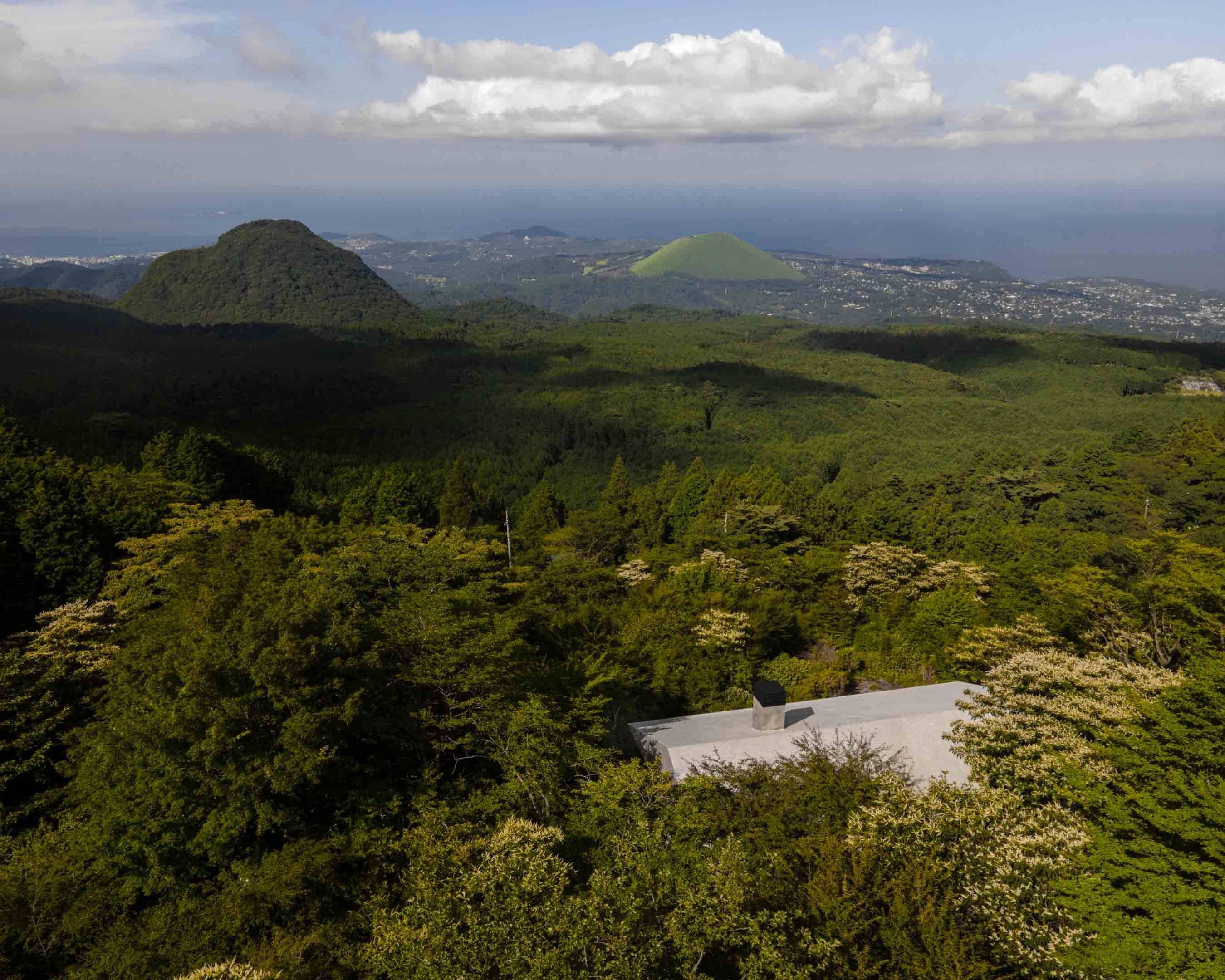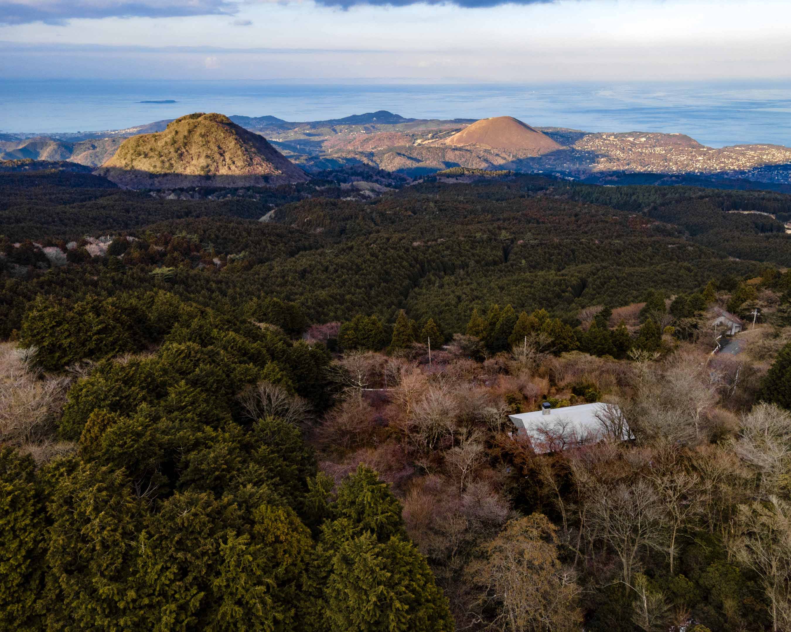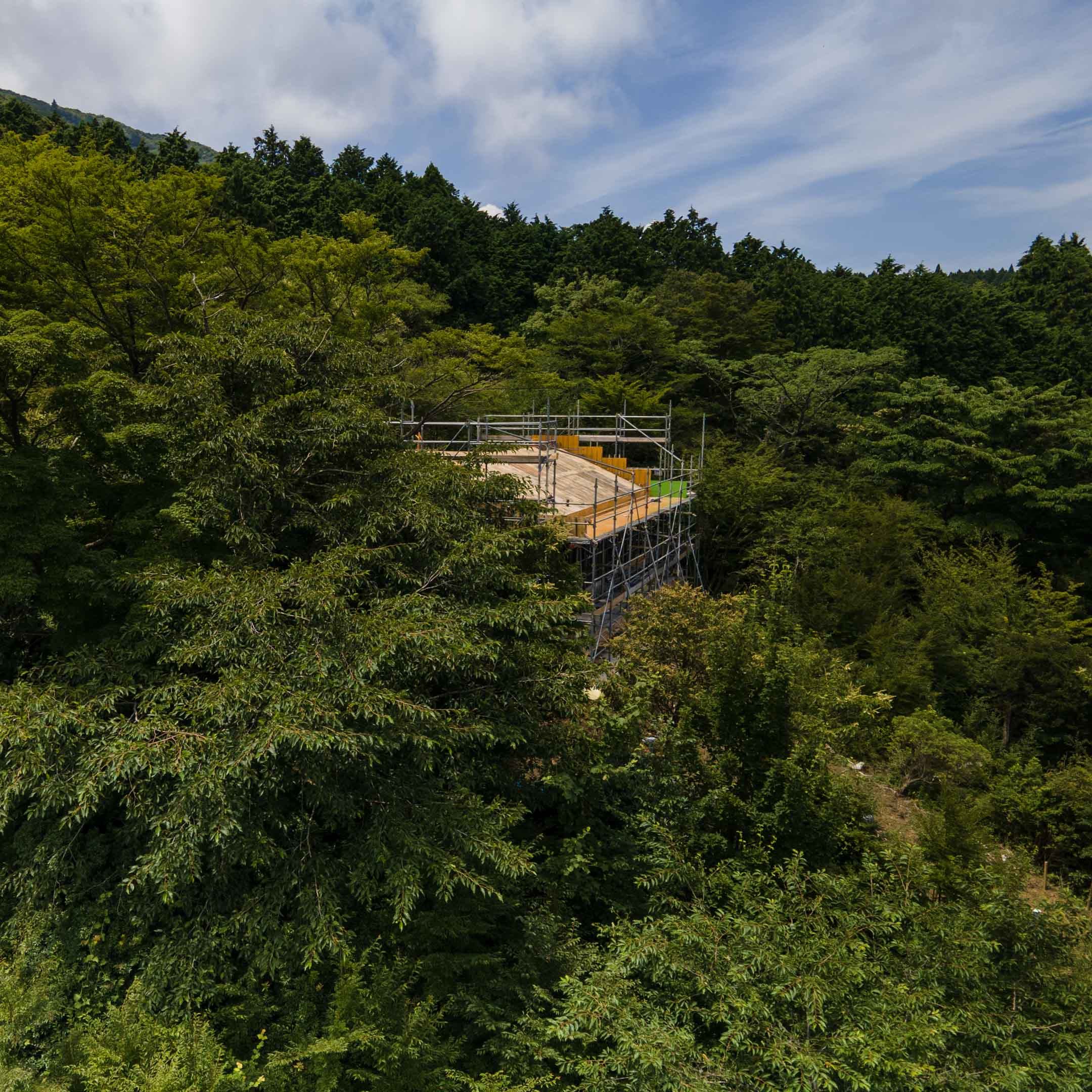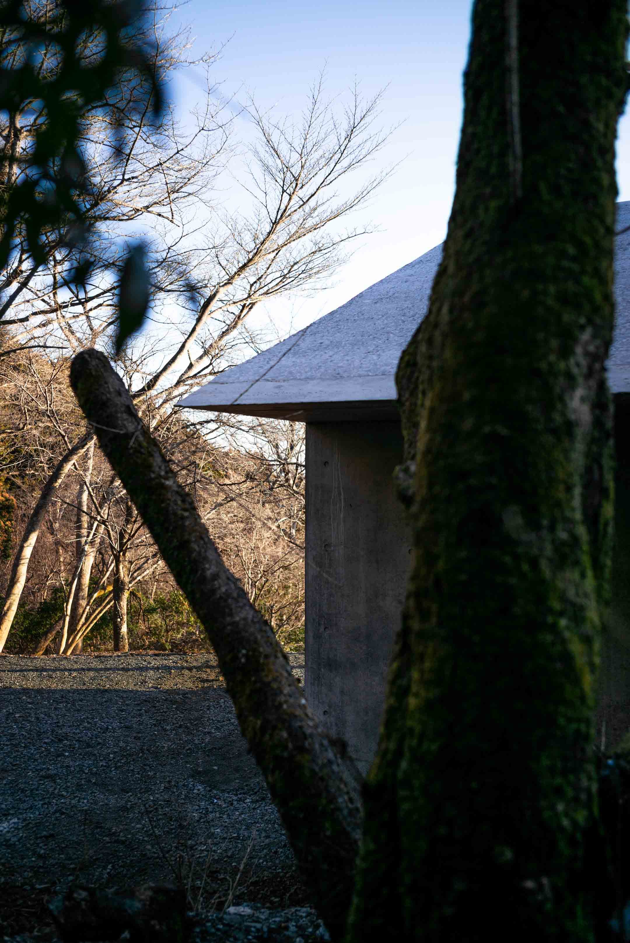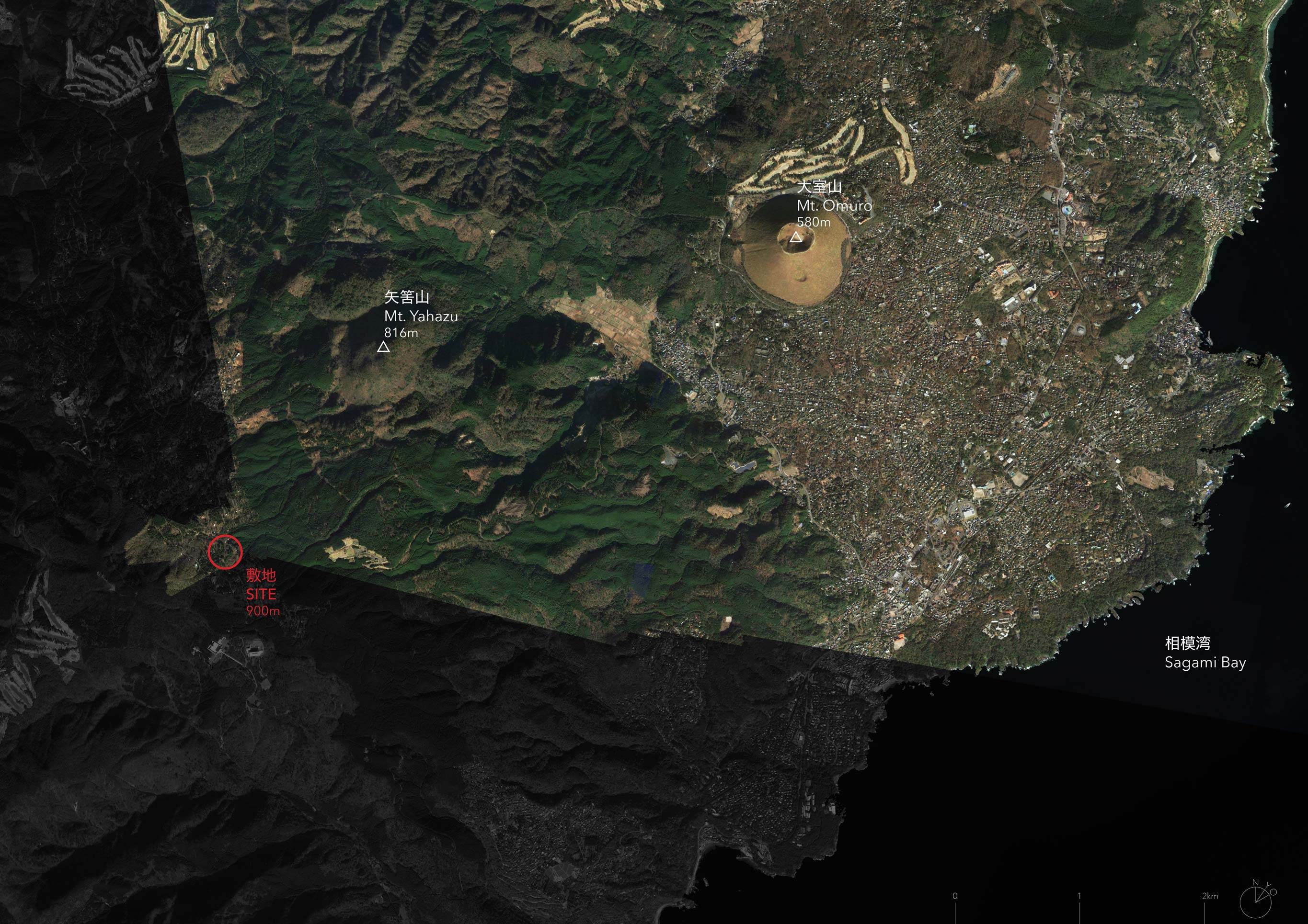 We are in the Amagi Highlands, about 900 metres above sea level. At the end of a curvy drive through a mountain forest, we find the access to the site on its highest point along the road demarcating its southwestern boundary — after having inadvertently passed its northeastern boundary, 34 metres below.