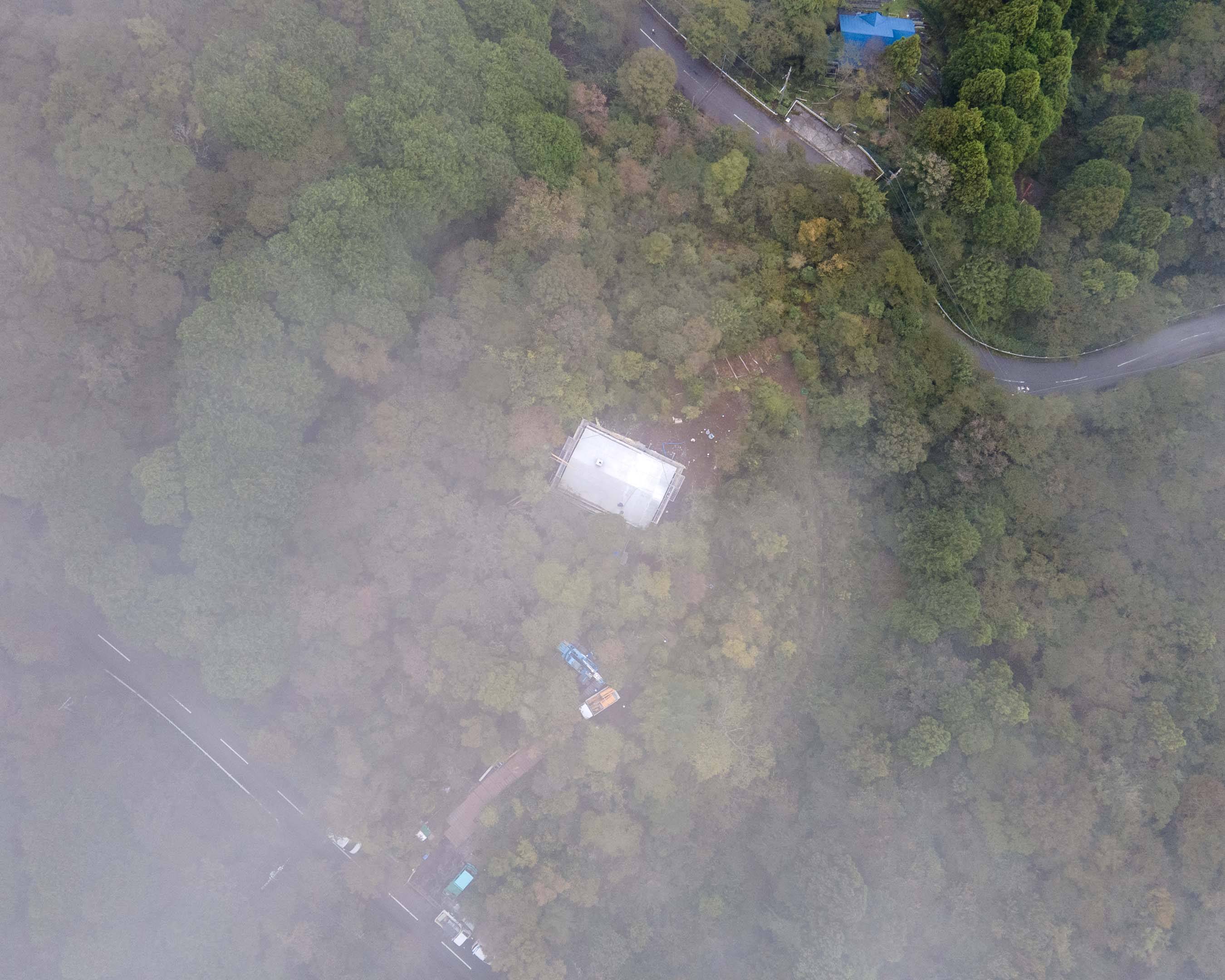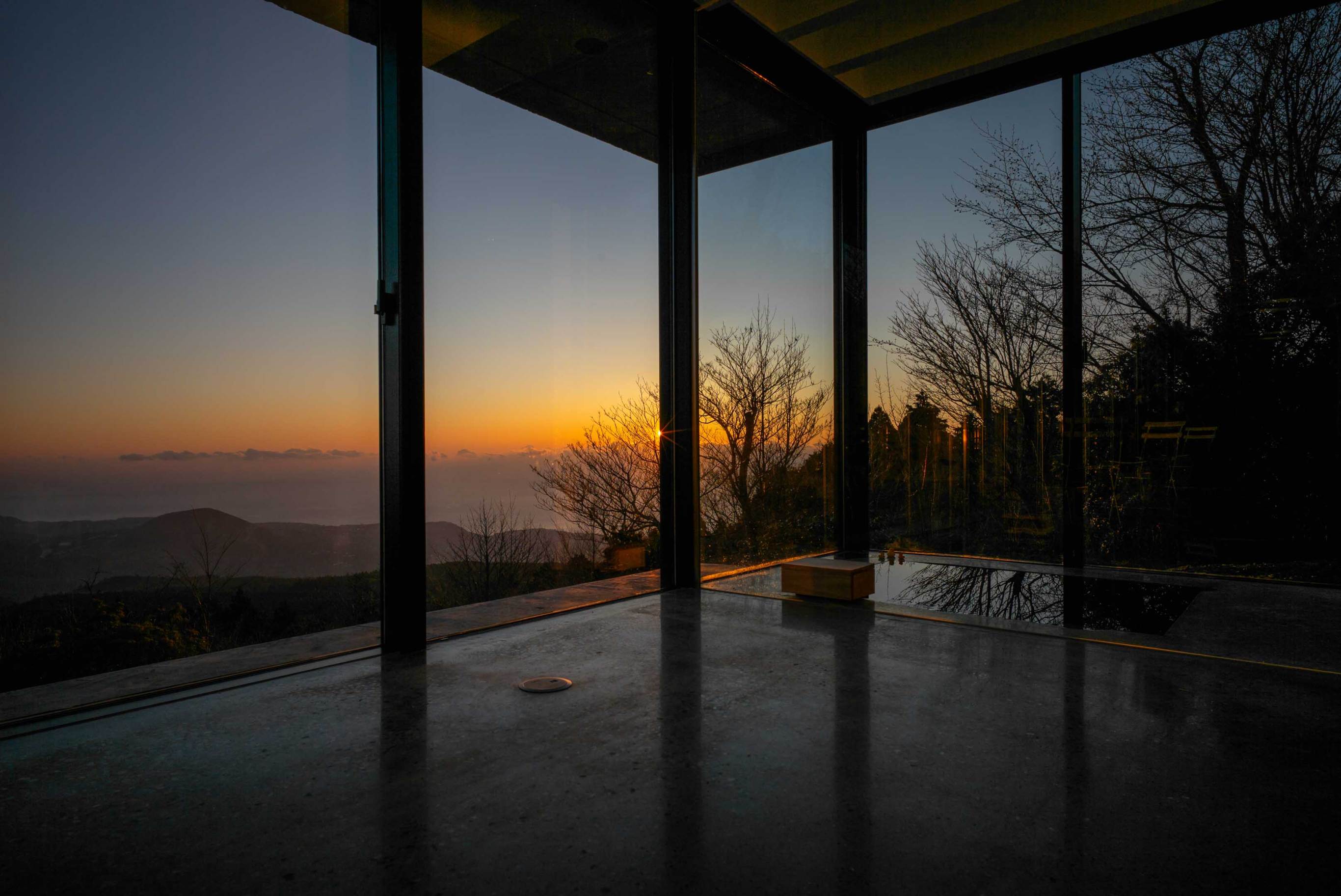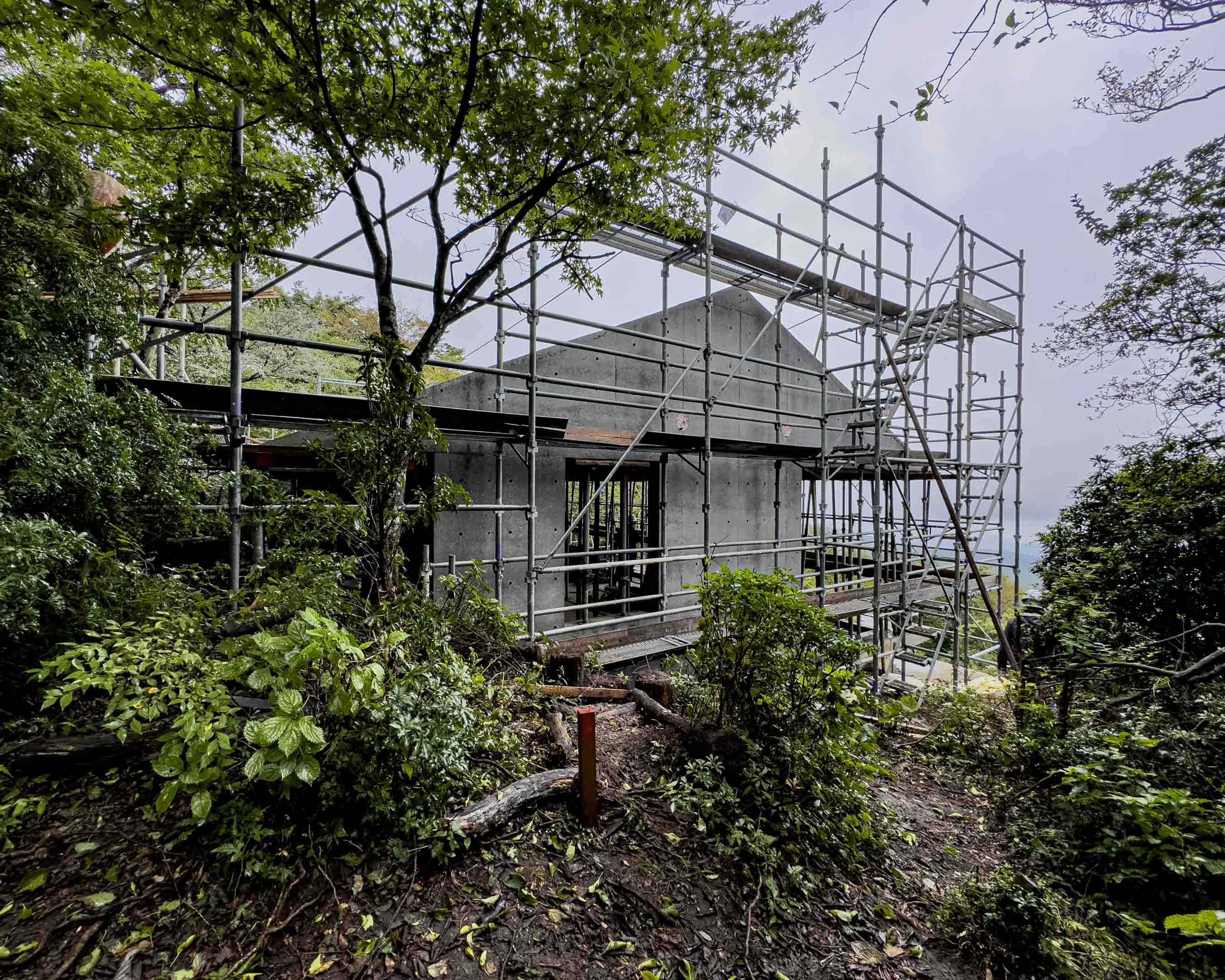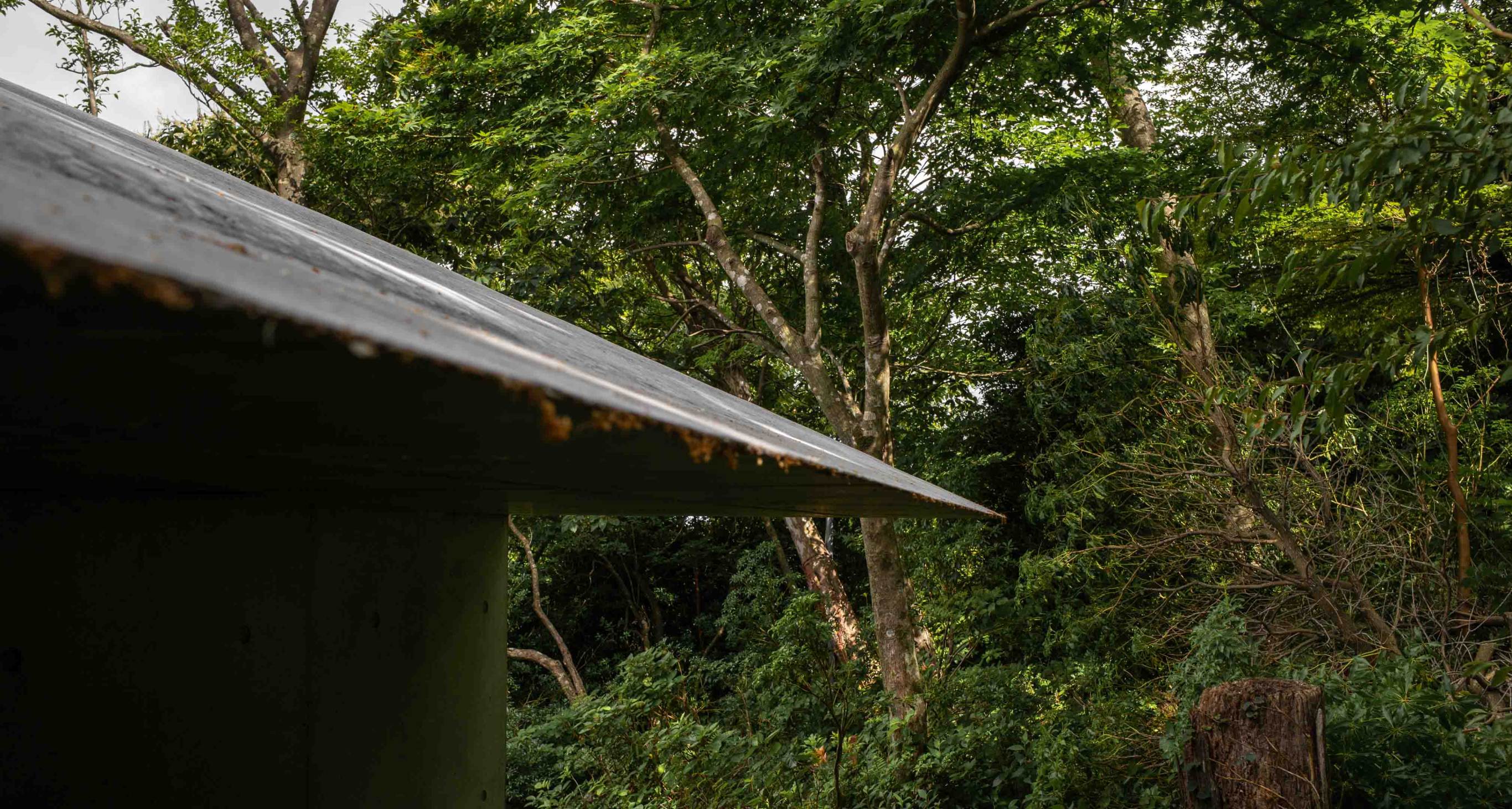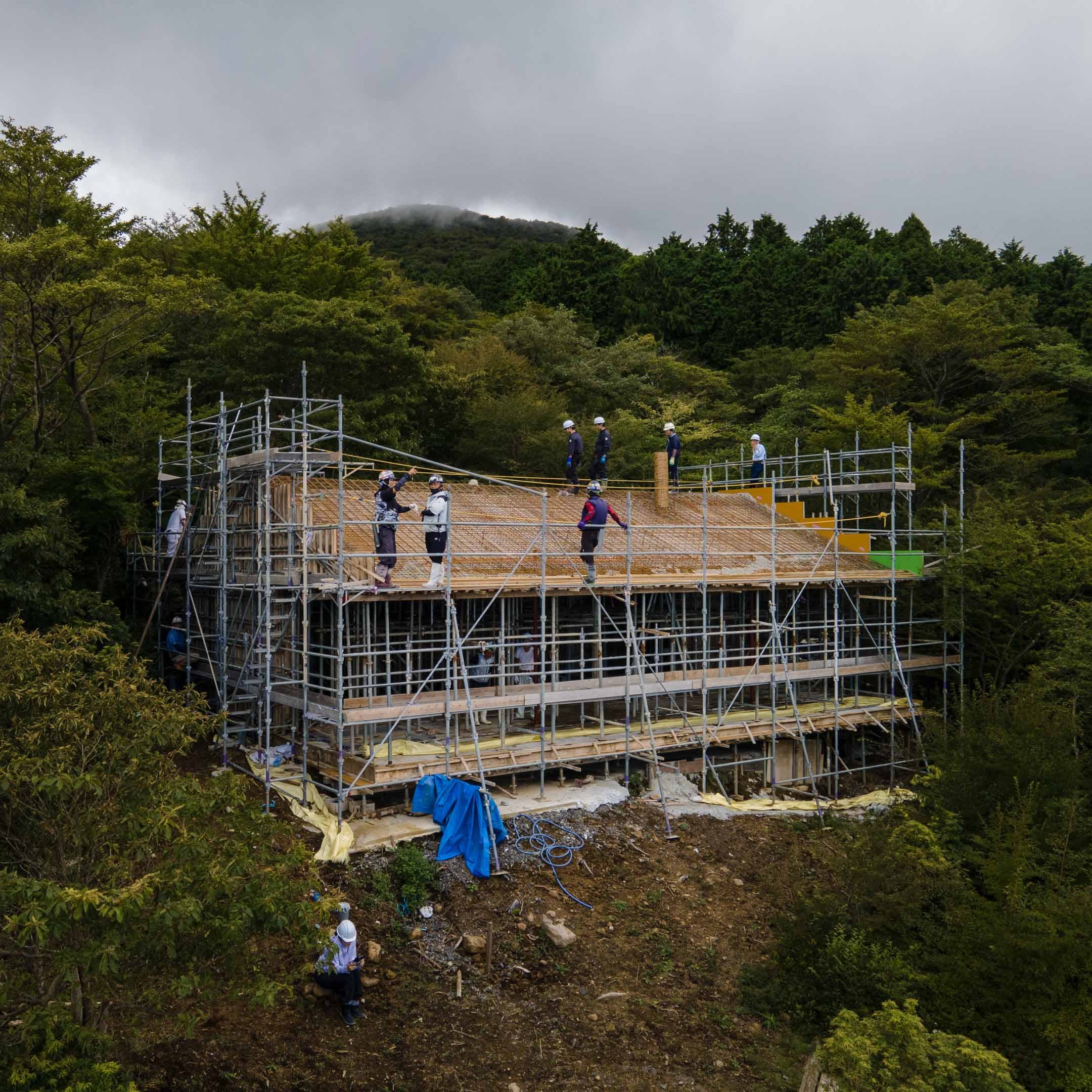 We are in the Amagi Highlands, about 900 metres above sea level. At the end of a curvy drive through a mountain forest, we find the access to the site on its highest point along the road demarcating its southwestern boundary — after having inadvertently passed its northeastern boundary, 34 metres below.