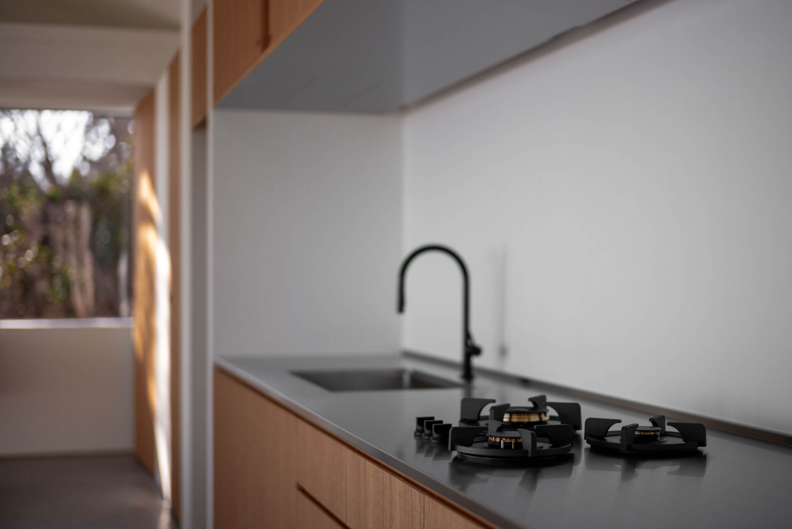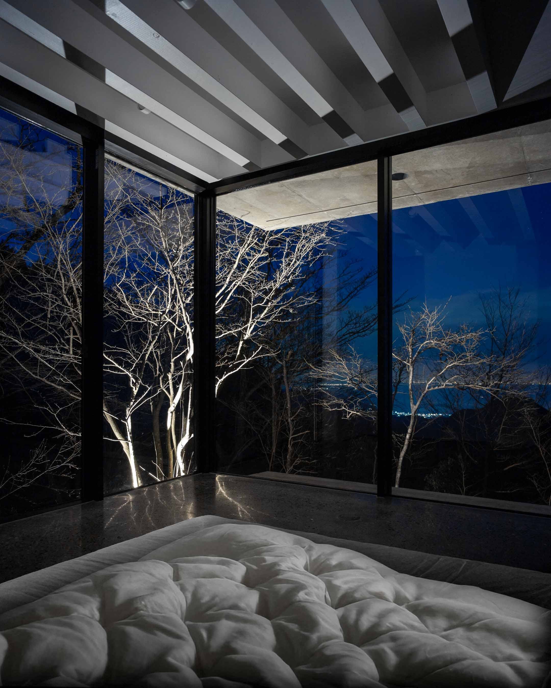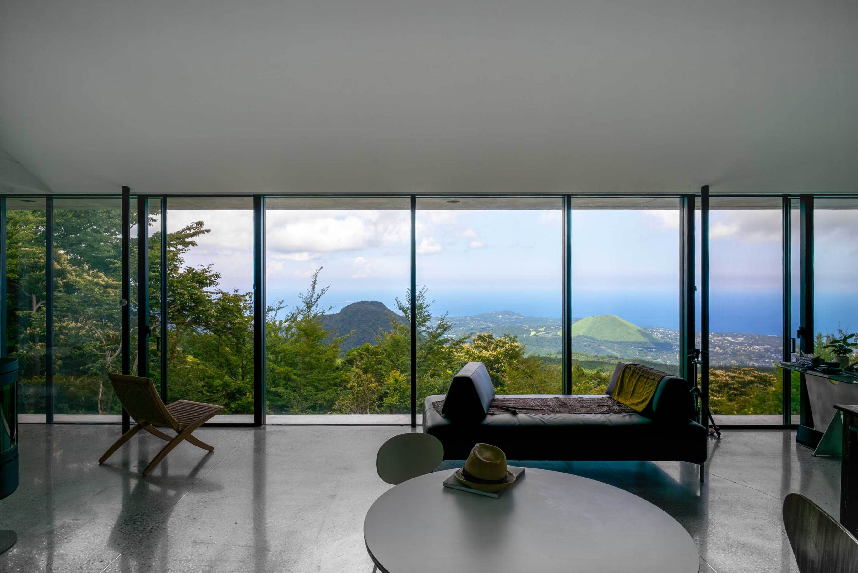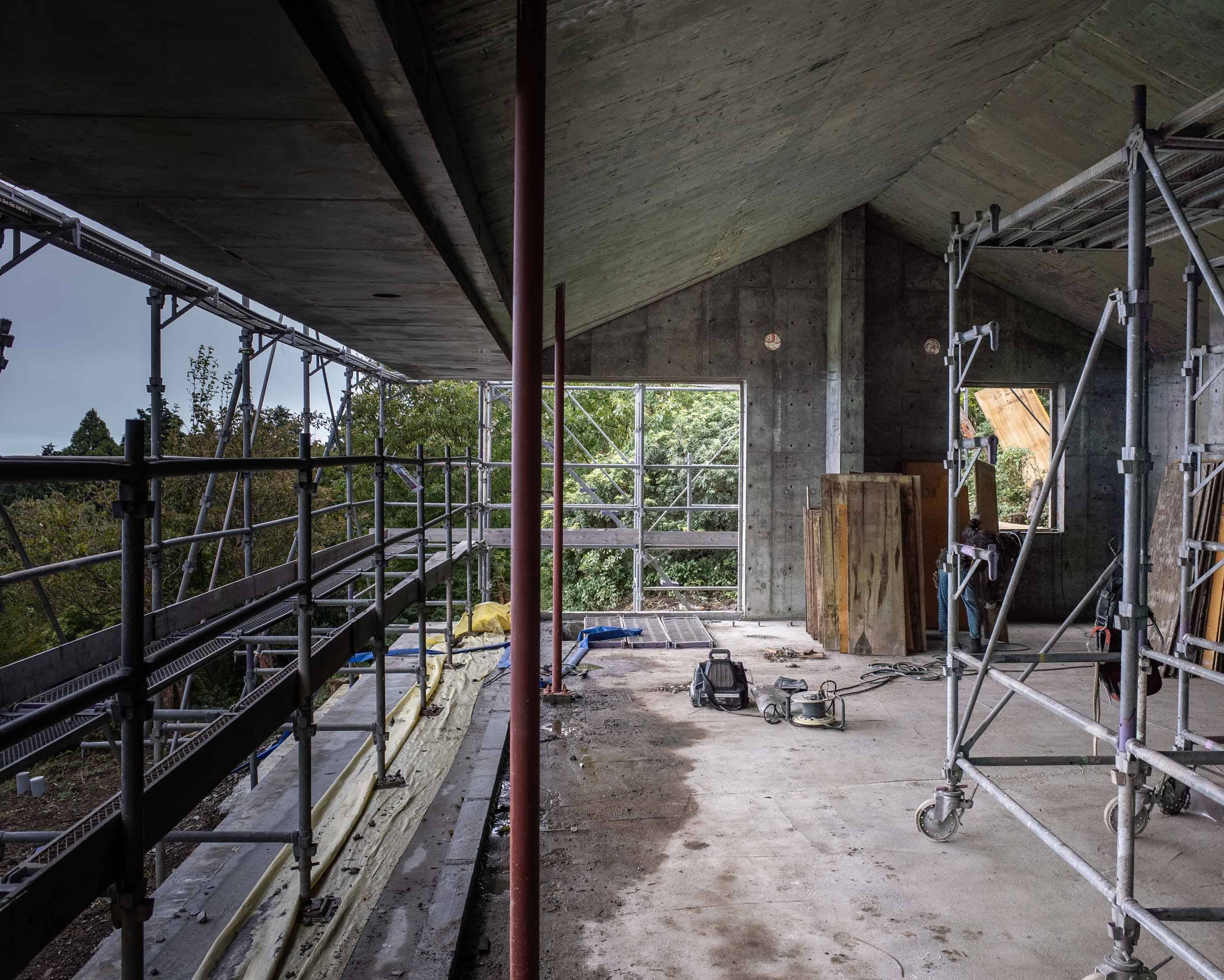 The client is a spartan art collector. The largest piece of art he has just purchased is around us: An ever-changing background of nature. All architecture has to do here is to embrace the surroundings whilst protecting from the elements and the slope.