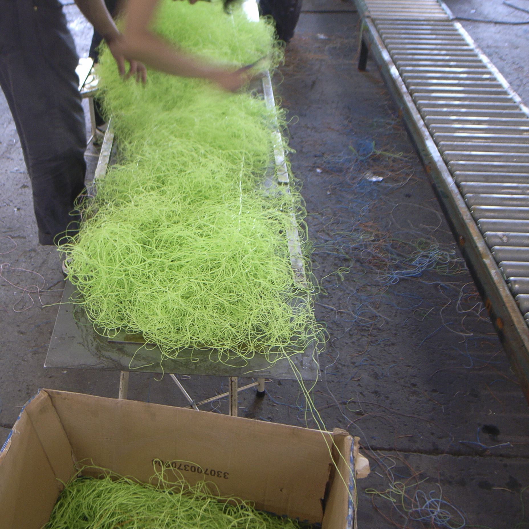 Walking around the factory must be a paradise-like experience for the bricoleur. Yet to merely turn the masses into an arrangement of industrial waste would mean to forgo opportunity. Our aim has to be and is higher: Here is vast potential for a new, unexpected materiality out of what the waste is providing. What is the norm in waste-collection processes is some sort of purification through separation followed by amalgamation of the more or less pure into something as close as possible to the material the waste was originally made from. What we instead suggest is persistent (ab–)usage of the waste’s intrinsic and often ingenious qualities.