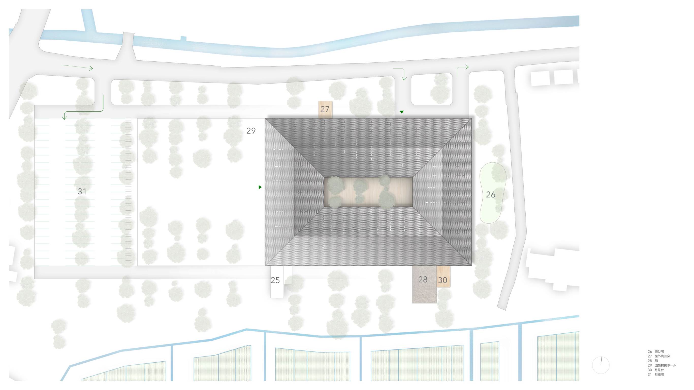 An ever increasing number of rural areas in Japan are facing the harshest threat of ageing societies: A rapidly dwindling population draining town after town of life. Between more and more empty containers, these towns and villages are becoming uncannily charming sets for endzeit movies where impenetrable voids are taking over their hosts.This project for a competition in a small town east of Kyoto challenges the notion of a community centre as a building.